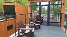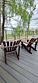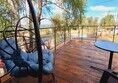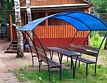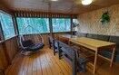 терраса с качелей -кокон, столом на 10 гостей и скамейками