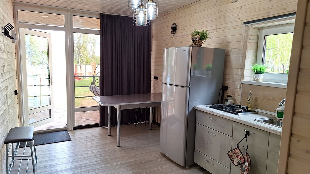 В летний период работает кафе, а в остальное время года отдыхающие могут готовить самостоятельно на оборудованных кухнях или использовать мангальную зону на свежем воздухе. В пешей доступности находится песчаный пляж с пологим берегом, где можно искупаться или заняться рыбалкой. На территории имеется бесплатная парковка и детская площадка.