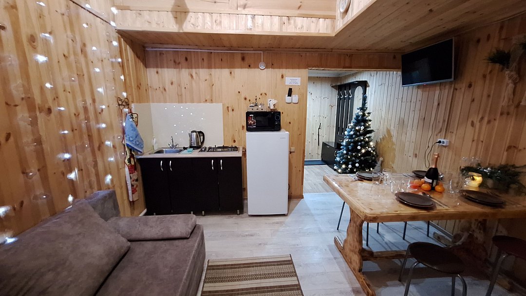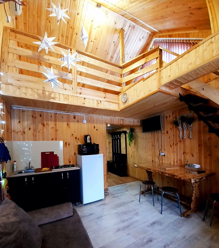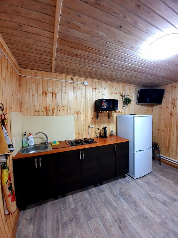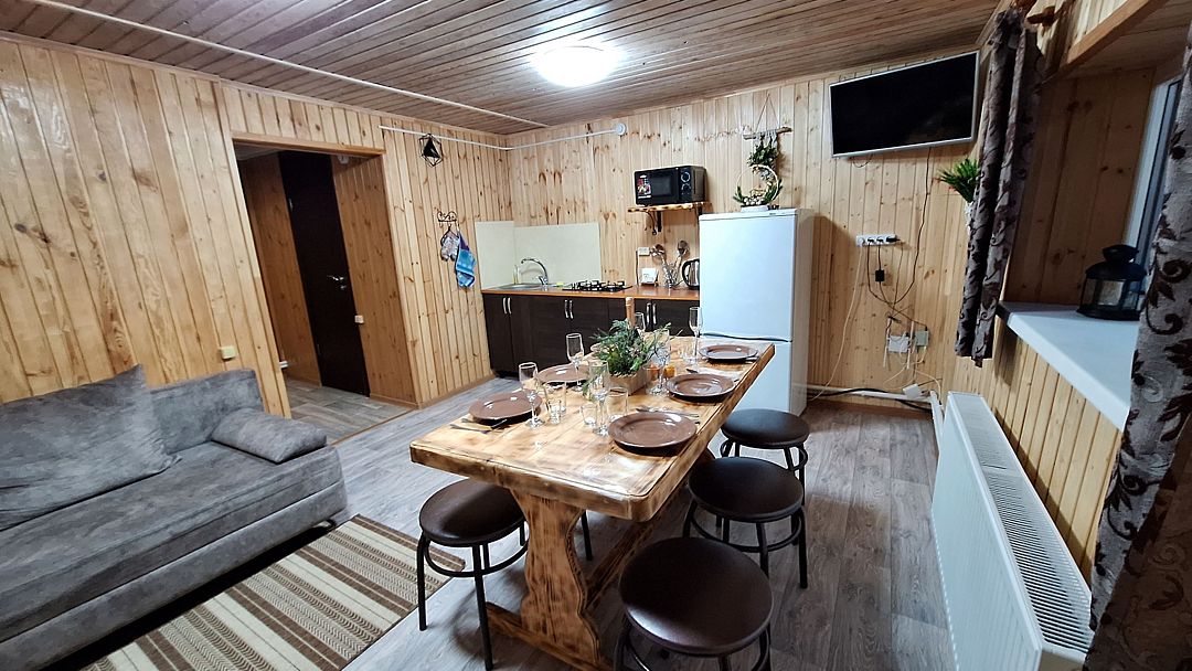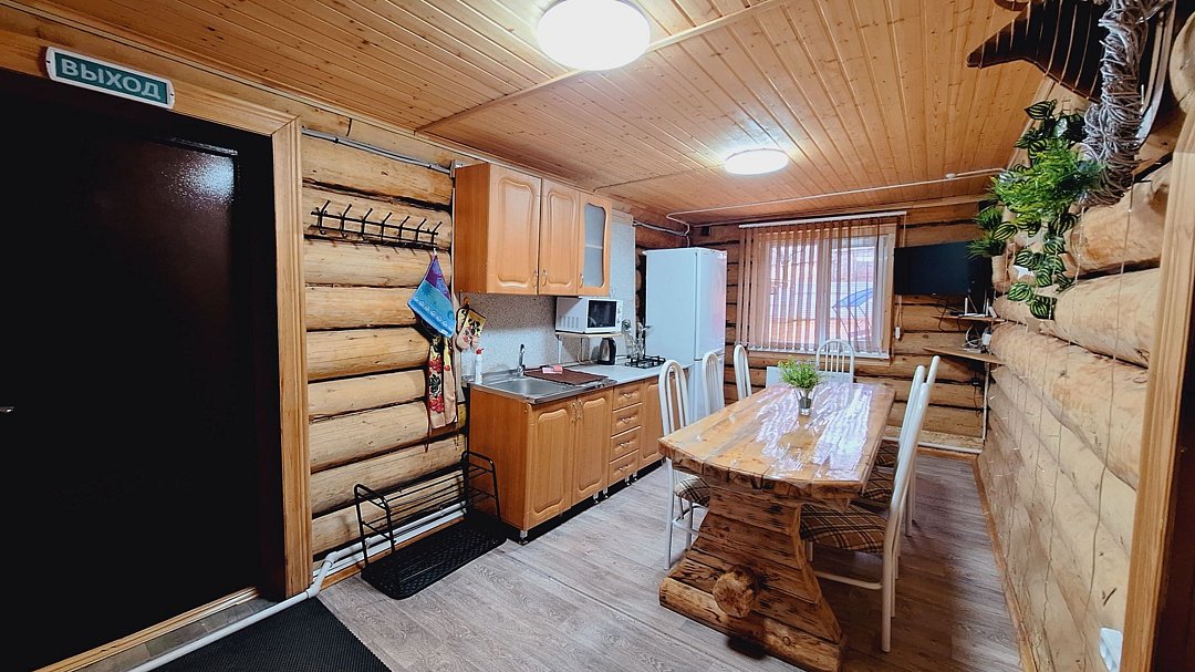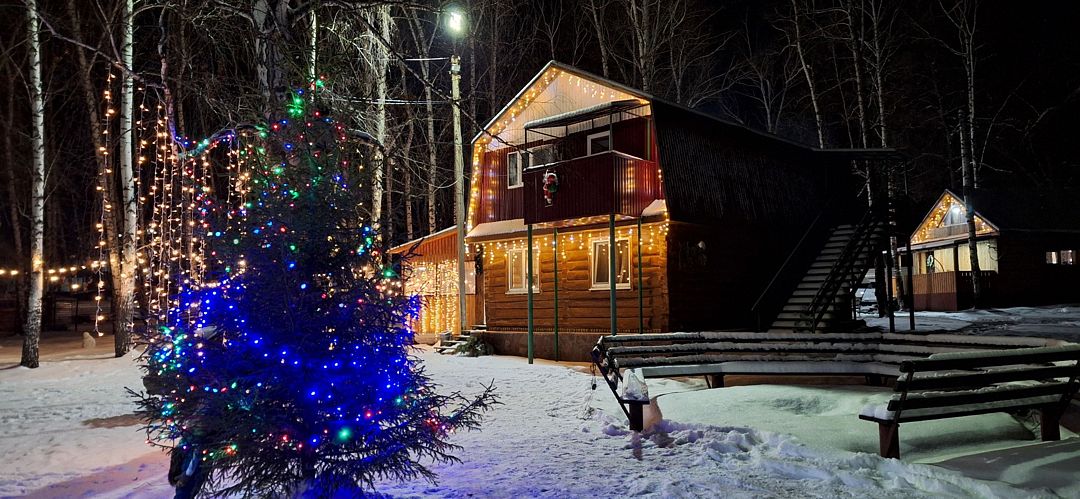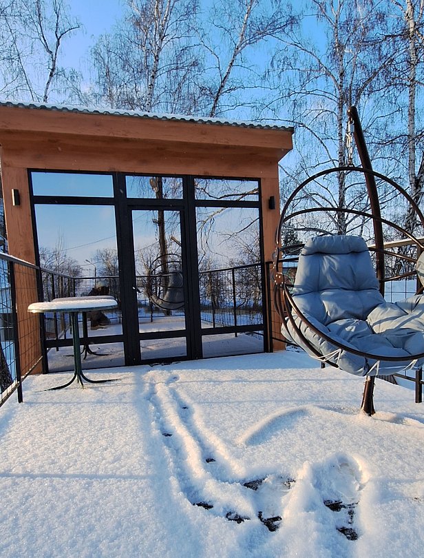 Круглый год доступны 5 отапливаемых домов, две бани на дровах и два сибирских чана под открытым небом. В теплых и уютных домах предусмотрено все необходимое для комфортного проживания: отопление, горячая и холодная питьевая вода из артезианской скважины, душ и санузел, фен, постельное белье, полностью оборудованная кухня (газовая плита, холодильник, микроволновка, чайник и посуда), телевизор, кондиционер. У каждого дома есть своя беседка или терраса с мангальной зоной.