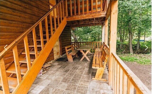 Комфортабельный 2-этажный дом на берегу реки, рассчитанный на размещение 10 человек.