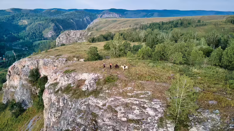 Катание на лошадях по склонам горы в Мурадымовском ущелье.