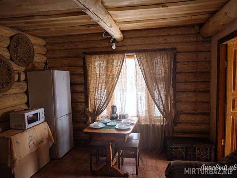 Деревянный дом №3 на 10 мест двухэтажный. Теплые полы, горячее и холодное водоснабжение, санузел с душевой, посуда, микроволновка, чайник, холодильник, большой обеденный стол, телевизор, музыкальный центр, в спальнях двуспальные кровати с постельным бельем. Рядом собственная мангальная зона.