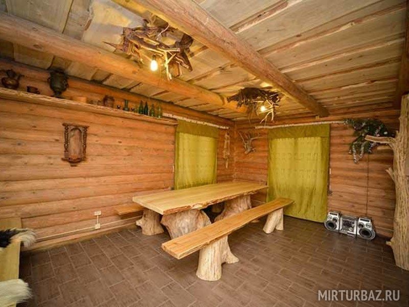 Зимой рассчитан на 4 места, летом на 8 мест. Рядом собственная крытая беседка с освещением, мангал.