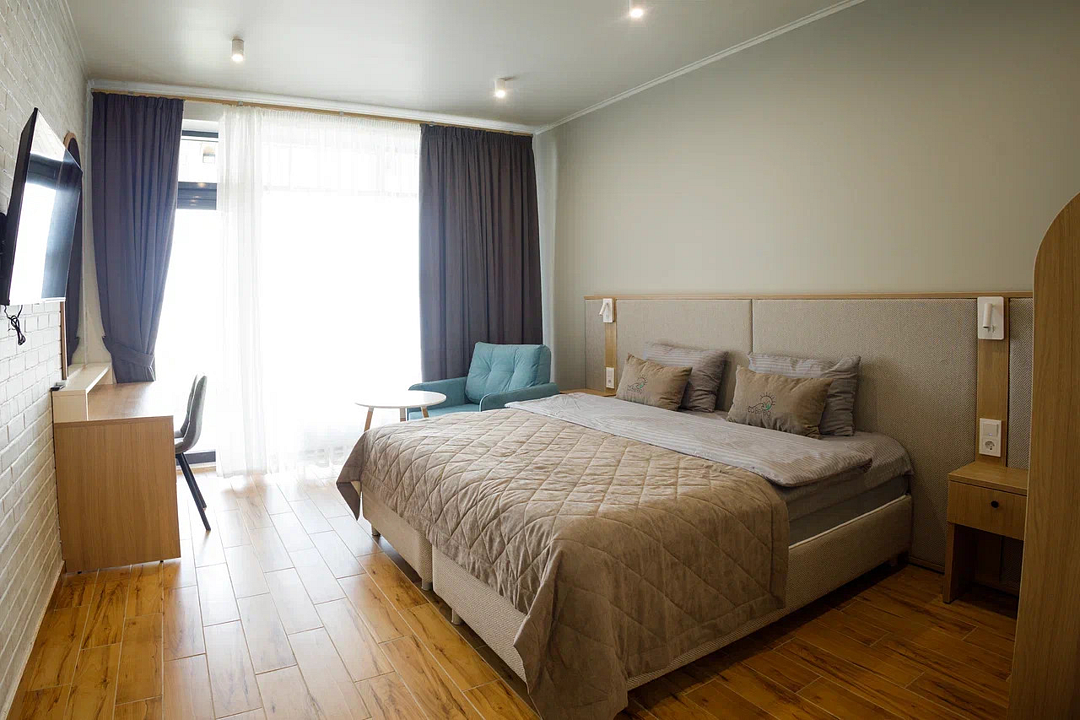 Особое внимание уделено дизайну, оснащению и звукоизоляции. В люксах есть автоматические жалюзи, а потрясающие виды на озеро и горы никого не оставят равнодушным.