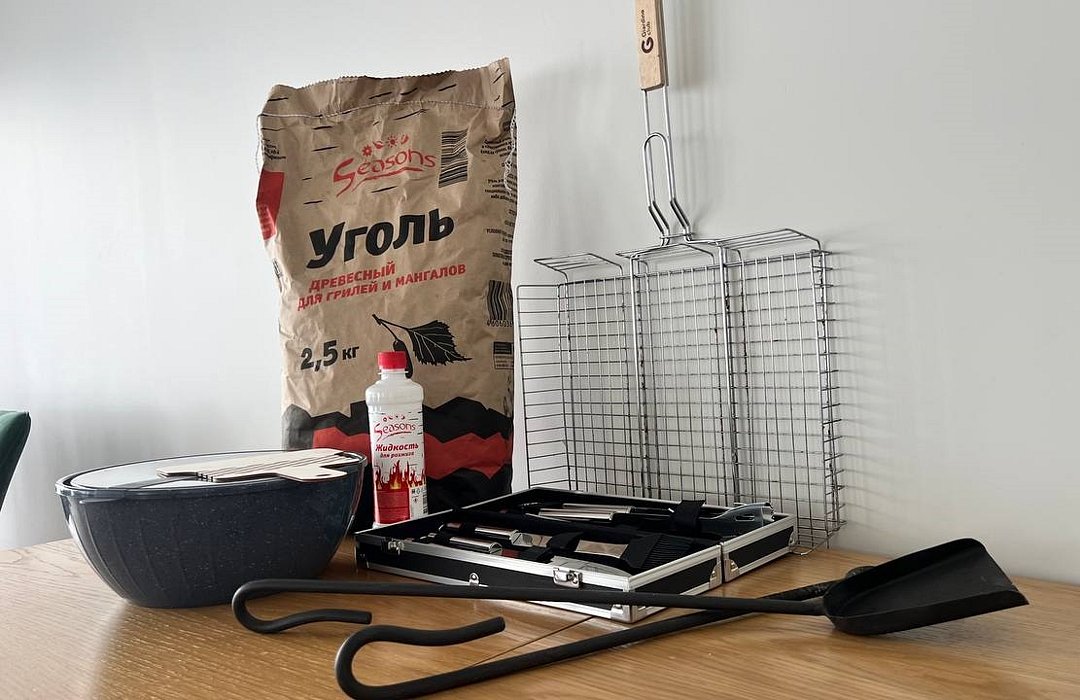 - В стоимость включено пользование мангальной зоной и мангальный набор (дрова, уголь, розжиг, спички, посуда для готового блюда, решетка) — 1500 ₽ / 2часа.