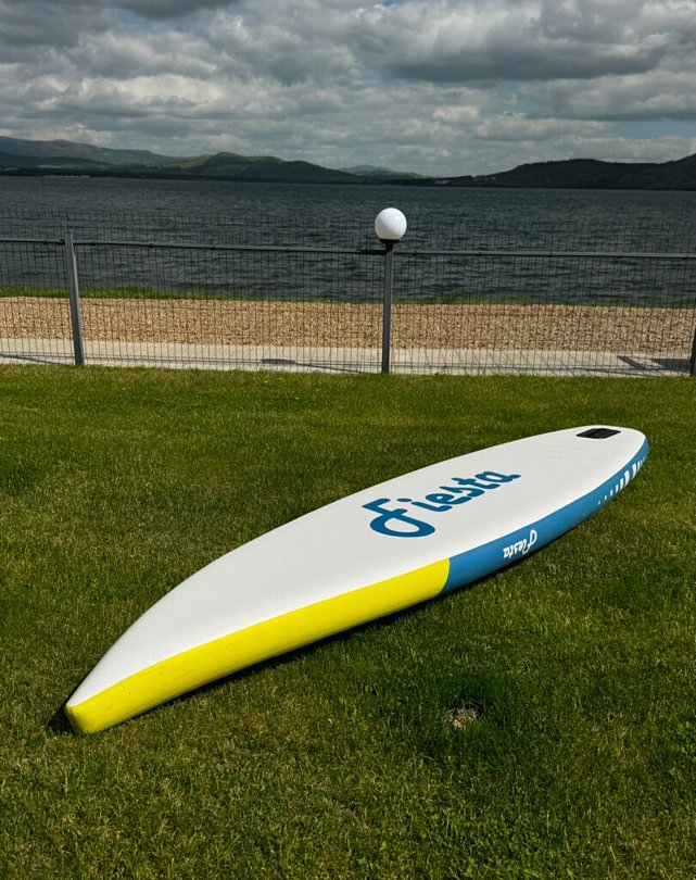 Новинка: Гоночная SUP-доска 14” (430 см) — отличается невероятной легкостью и жесткостью. Она изготовлена из двухслойного ПВХ, соединенного по методу ламинации, на прочной текстильной основе машинного плетения плотностью 1000 den. Особая структура плетения основы позволила существенно снизить вес модели, и при этом добавить ей дополнительную прочность и стойкость к механическим повреждениям.