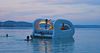 Плот устанавливается всего в 20 метрах от берега с помощью двух якорей.