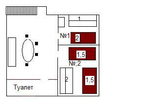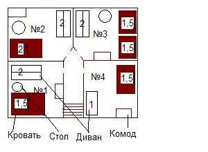 - 3 комната (1,5 сп кровать, 1,5 кровать, 1 сп диван, тумбочка)