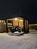 На территории глэмпинга Вас ждёт дом с большой террасой, на которой расположились баня-сауна на 4-6 человек, фурако с аэромассажем и атмосферной подсветкой, зона отдыха.