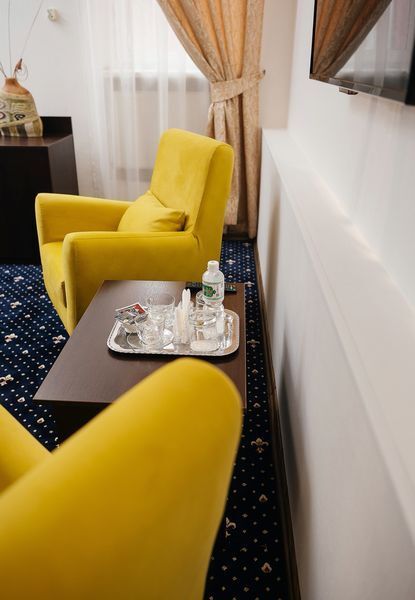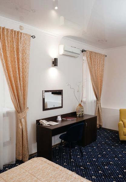 Отель располагает номерами следующих категорий: номера первой категории, номера для молодоженов, полулюкс. Номера оборудованы всем необходимым для комфортного проживания. Имеются номера с интерьером в классическом стиле, а также номера с аутентичной мебелью и тематическим дизайном.