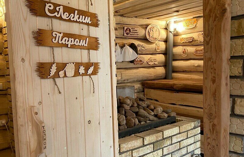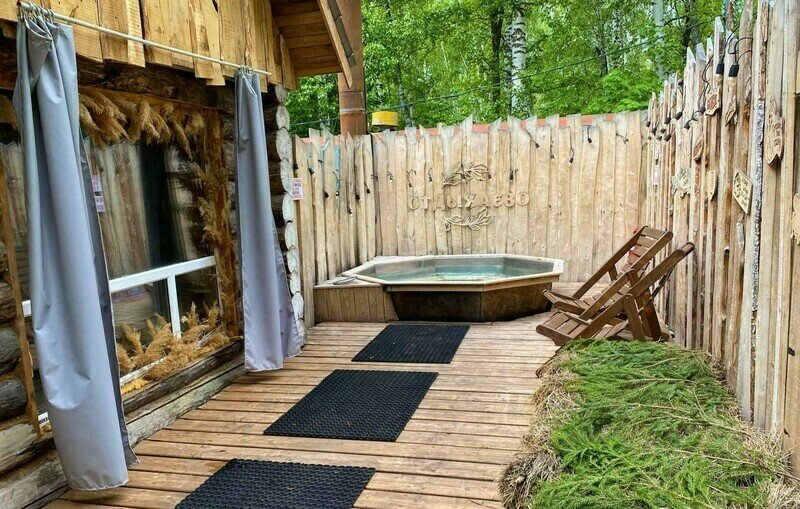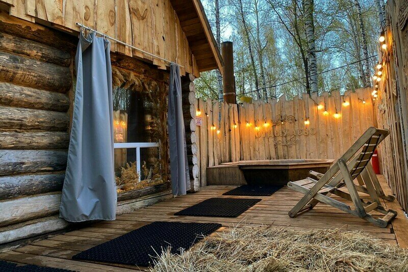 На территории работает банный комплекс «Медвежья берлога». Большая, жаркая баня на дровах оборудована панорамным окном и купелью внутри парной. На террасе установлены банный чан и места для отдыха. В распоряжении отдыхающих березовые веники, травяной чай и сеновал.