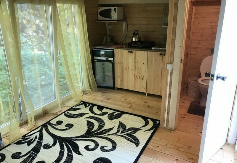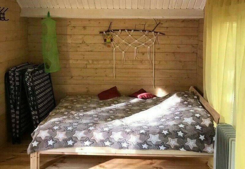 двуспальная кровать, кухня, с/у душ на территории.