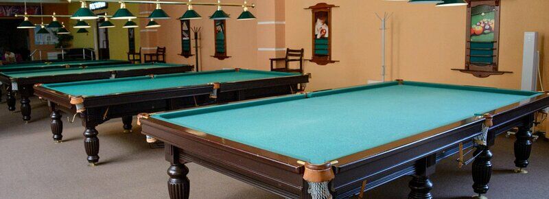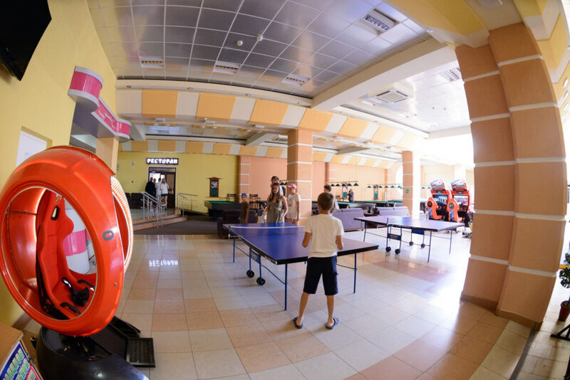 13 игровых автоматов, 5 бильярдных столов (4 - 12 фут., 1 - 9 фут) 2 теннисных стола, батут, 6 диванов, 5 журнальных столов.