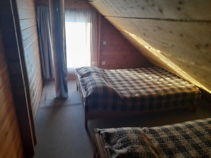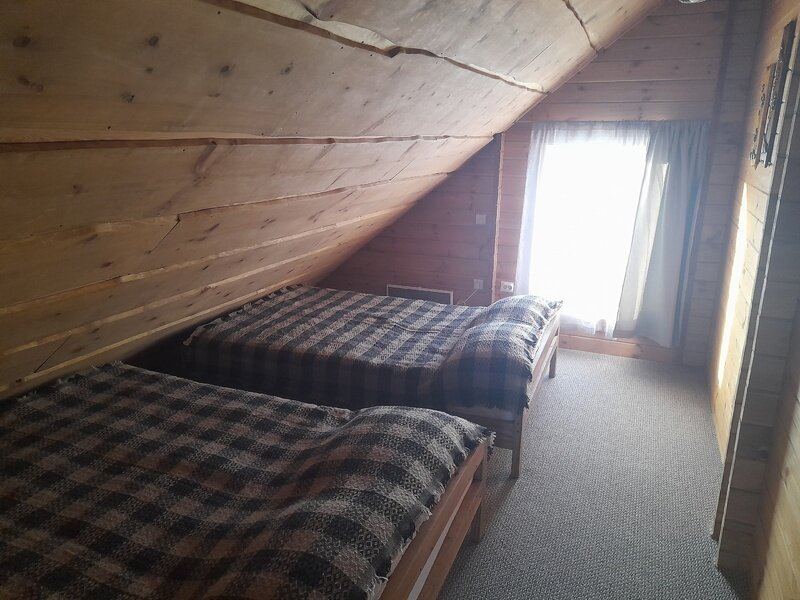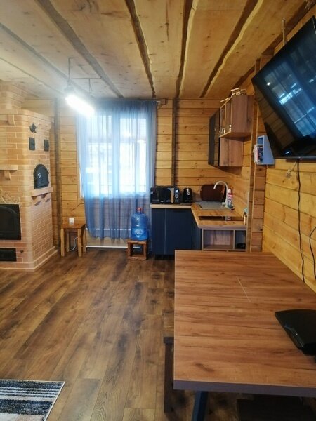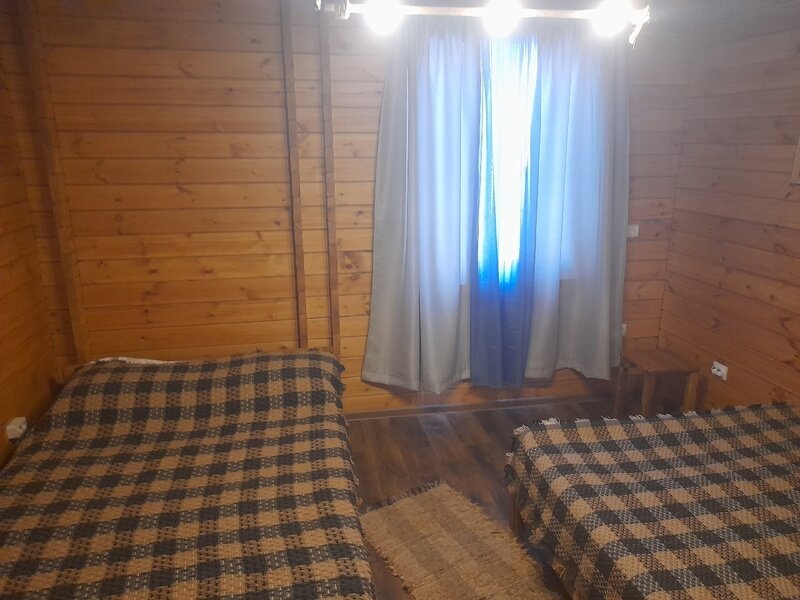 Уютный двухэтажный домик на 12-14 человек. В доме есть все удобства: туалет, душевая, баня, телевизор, 3 спальни с кроватями ручной работы, печь, посуда.