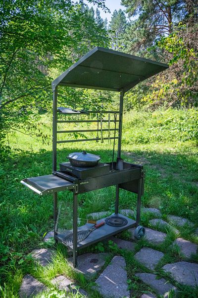 С собой нужно привезти только угли (казан, решетка и шампуры для мангала предоставляются).
