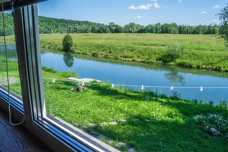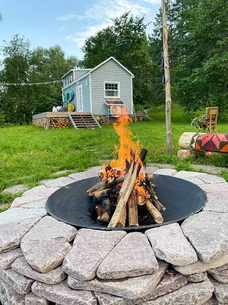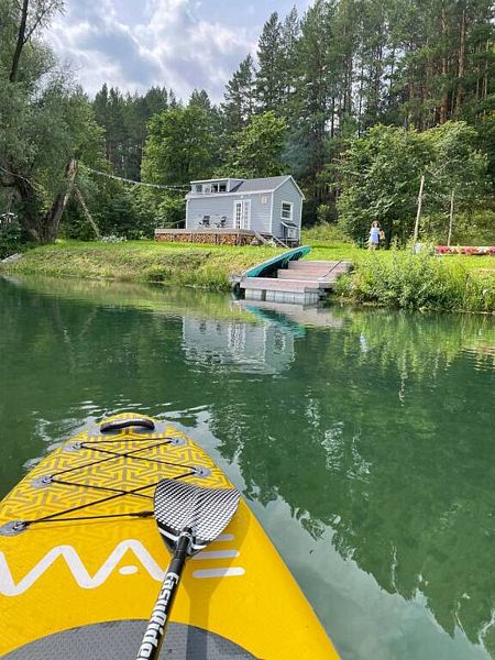 На территории гостевого дома расположена костровая зона, две террасы, примыкающие к дому — одна крытая, с обеденным столом, вторая — с шезлонгами и сапбордами; причал для сплава по реке и купания, мангальная зона — казан, решётки, шампура.