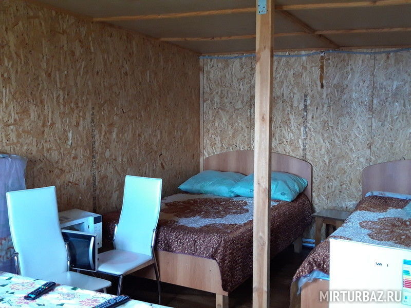 В номерах имеется отопление, двухспальная кровать, стол-тумба, холодильник, чайник, телевизор,спутниковое телевидение, микроволновка, вентилятор,постельные принадлежности,посуда. Для проживания более двух человек выделяется двухспальный ортопедический матрас и белье.