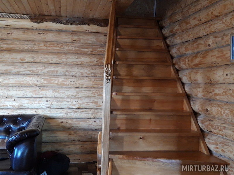В доме на первом этаже кухня и гостиная, на втором этаже две спальни.