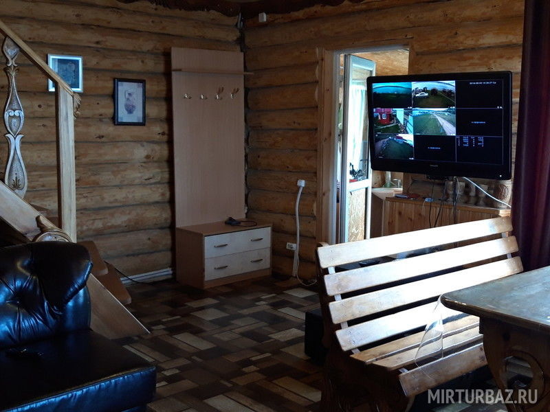 В доме имеется отопление, широкий кожаный диван, одна двухспальная кровать, две полутороспальные кровати стол обеденный, стулья, комод, газовая плита, холодильник, чайник, телевизор, спутниковое телевидение, микроволновка, вентилятор,постельные принадлежности, посуда, горячая и холодная вода. Для проживания более 8 человек выделяется двухспальный ортопедический матрас и белье.
