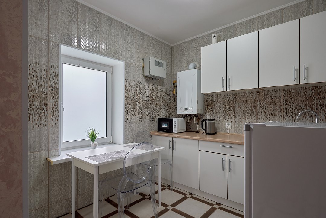 50 кв.м, две двуспальные кровати, два кресла-кровати, кухня, с/у ванна/душ, ТВ, Х