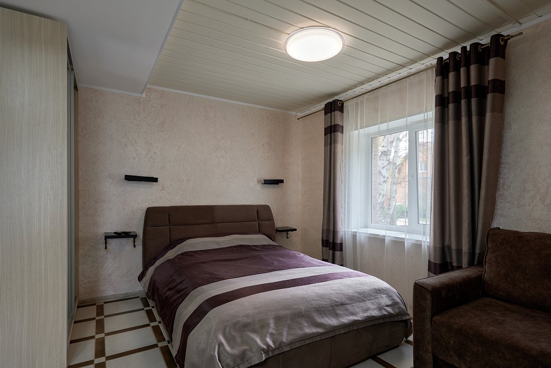 Просторный отдельно стоящий дом площадью 90 м² идеально подойдёт для отдыха большой семьи или компании друзей. Комнаты позволяют с комфортом разместиться до 10 гостей.
