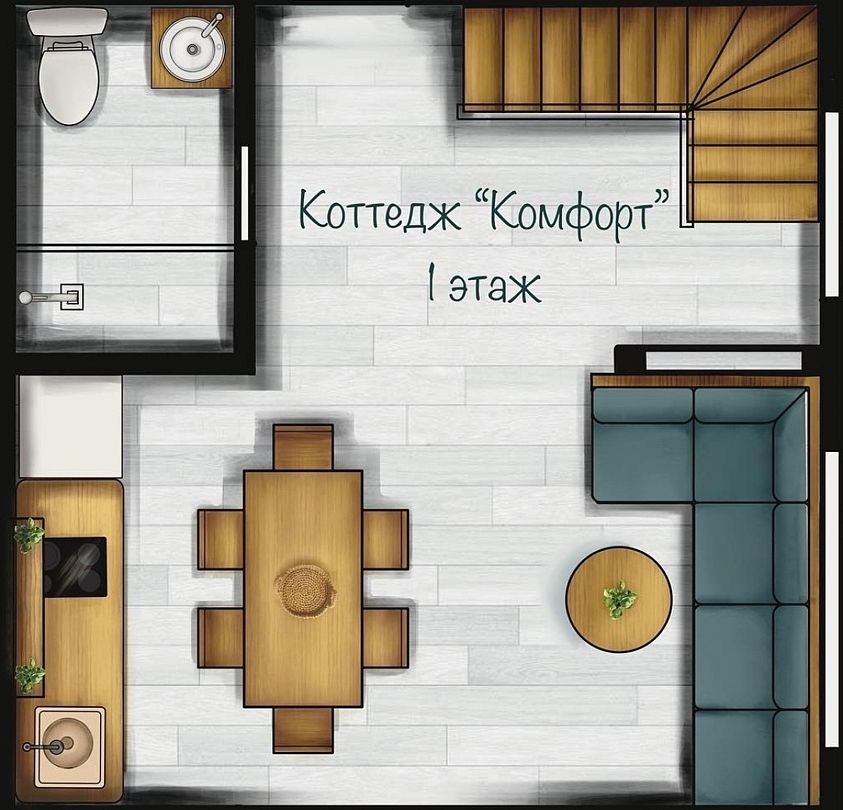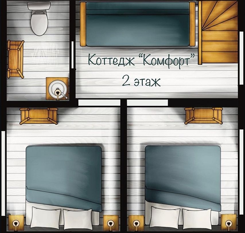 Двухэтажный коттедж, рассчитанный на 6 человек.