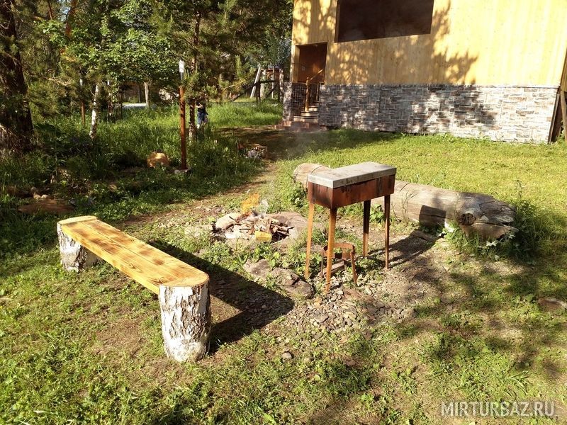 На территории есть мангальная зона со всем необходимым для приготовления еды.