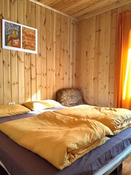 Гостевой дом рассчитан на 10 спальных мест. В доме две спальные комнаты.