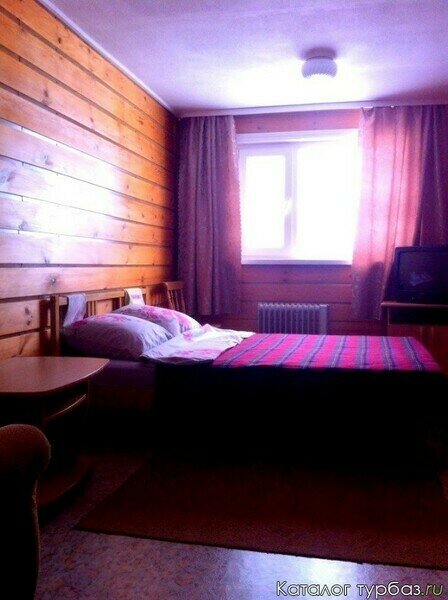 Двуспальная кровать, постельное белье, телевизор. В некоторых номерах есть холодильник.