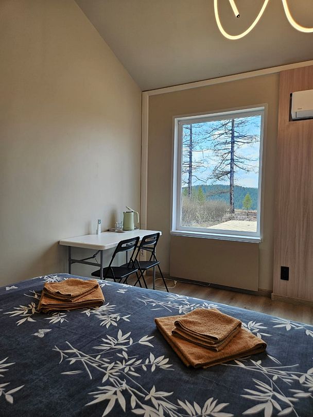 Двухместный номер в модульном доме с красивым видом из окна двуспальная кровать