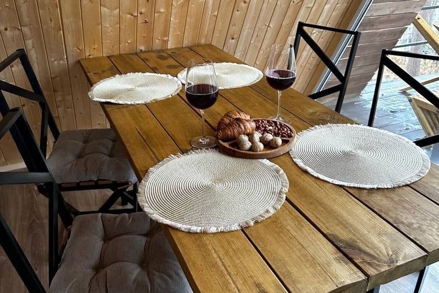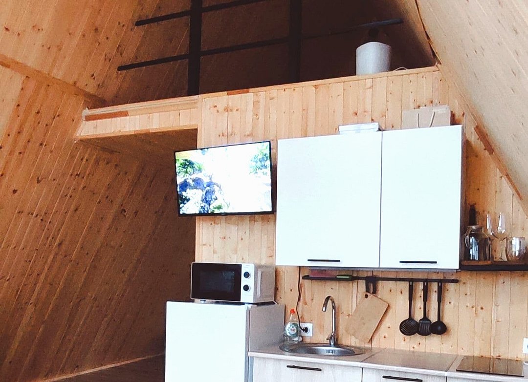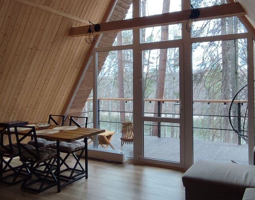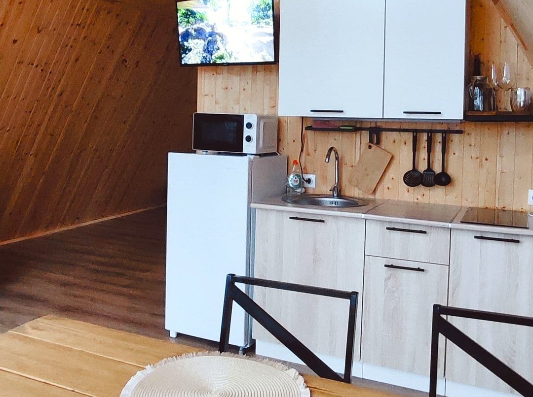 «Царевич» представляет собой уютный треугольный домик в стиле А-frame с балконом, с которого открывается живописный вид на водохранилище. В доме есть все для комфортного отдыха, включая систему «Умный дом» и теплые полы. Кухня полностью оборудована для самостоятельного приготовления еды – установлена варочная панель, СВЧ, холодильник, посуда. Рядом оформлена обеденная зона и гостевое пространство с диваном и смарт-телевизором. На втором ярусе – двуспальная кровать. Санузел совмещенный, с душевой кабиной, феном и туалетными принадлежностями. В доме также предусмотрена сауна для расслабления, чтобы сделать отдых не только приятным, но и полезным.
