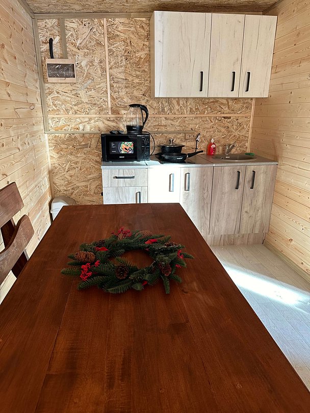 Независимо от того, стремитесь ли вы к активному отдыху, спокойному пребыванию или желаете провести время с семьей и друзьями, вы найдёте то, что придётся по душе. Среди услуг есть банный комплекс, чан и катание на снегоходах.