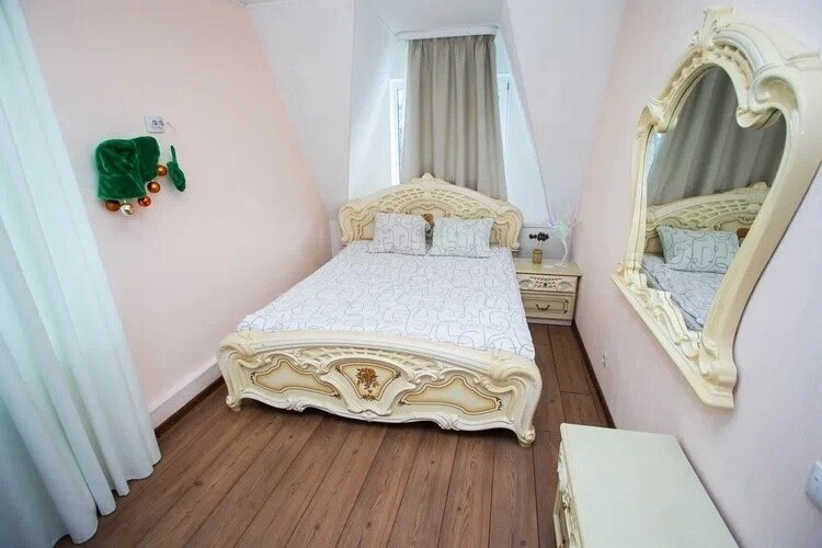 В номере: зеркало, тумба, шкаф. Холодильник общий в коридоре. Туалет и душ на этаже.