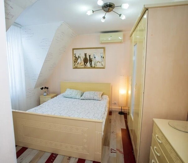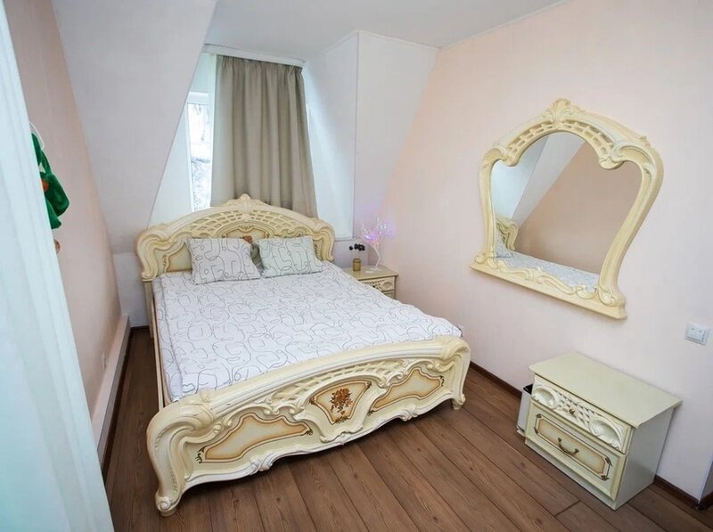 Столик, 2-х спальная кровать, 2 дивана. Один диван раскладывается. Детская кроватка по запросу. Удобства на этаже.