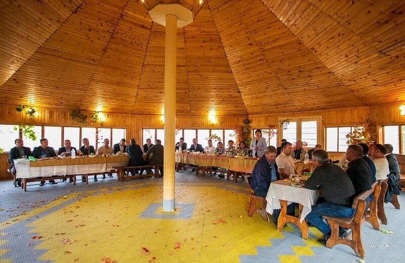 На территории базы имеется кафе, сауна с бассейном, шатёр для проведения мероприятий и банкетов, тематический зал и контактный зоопарк. Можно даже покататься на лошадях!