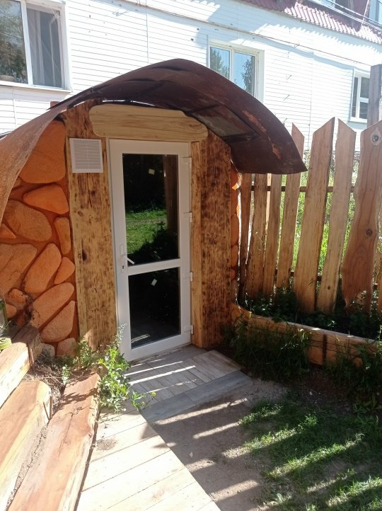 В номере: стол и два пуфа. Холодильник общий в коридоре. Туалет и душ на этаже.