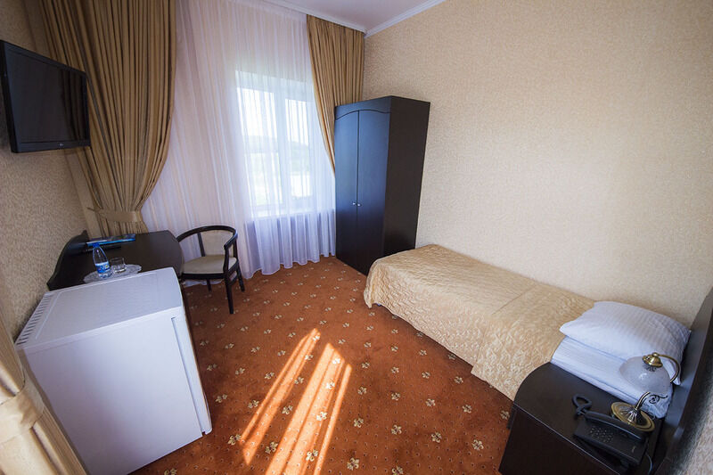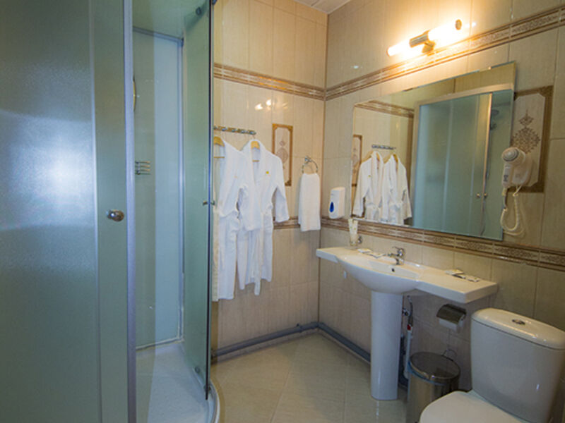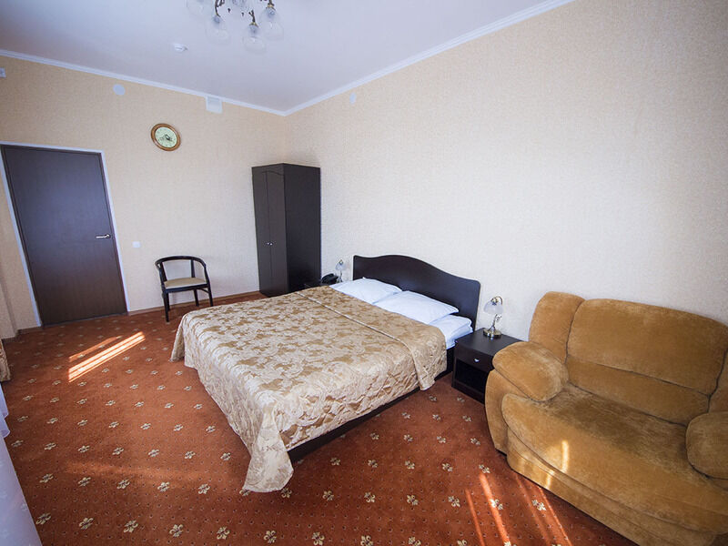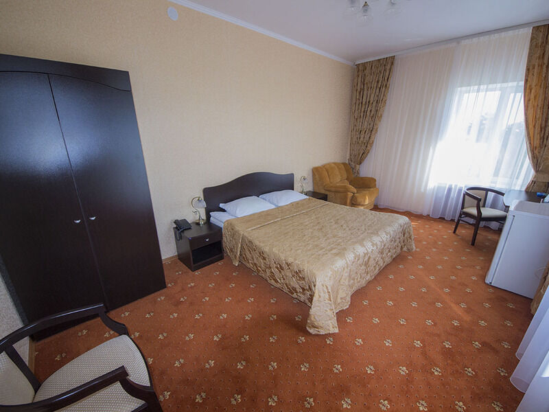 29 кв.м, двуспальная кровать, кресло-кровать, шкаф, прикроватная тумбочка, сейф, с/у с душем, ТВ, мини-холодильник, столик с необходимым набором посуды, чайник.