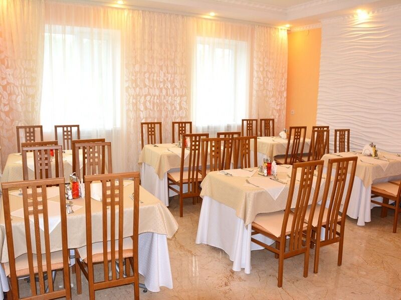 Питание организовано в каждой части комплекса отдельно. Обслуживание – по заказному меню. В оздоровительном комплексе столовая на 120 мест находится в 1-этажном здании, совмещенном с водолечебницей. Есть отдельное кафе «Золотая рыбка». В туркомплексе также предусмотрен отдельный зал питания и кафе на территории конного центра.