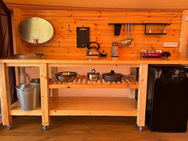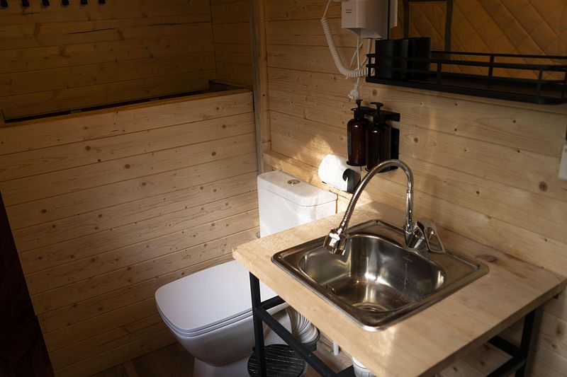 Номер для тех, кто хочет насладиться природой, при этом не отказывая себе в комфорте. Здесь есть все, для проживания семьей или компанией. Душ и туалет находятся прямо в номере.