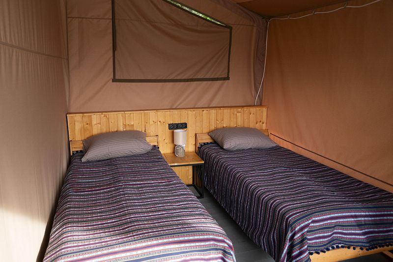 Максимальная вместимость одного сафари тента — 2 человека.
