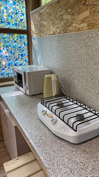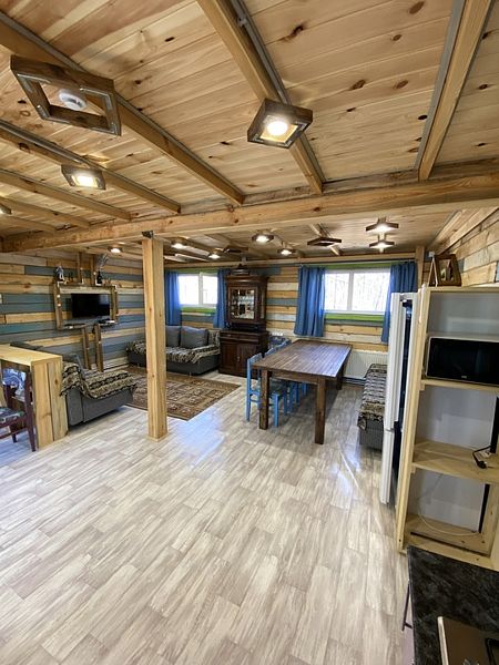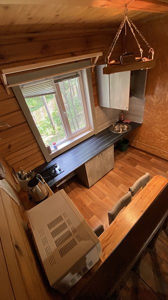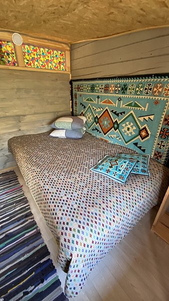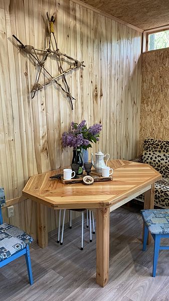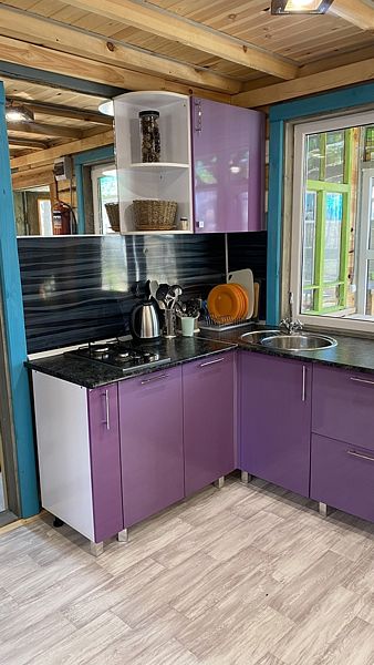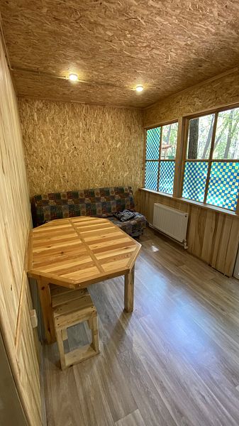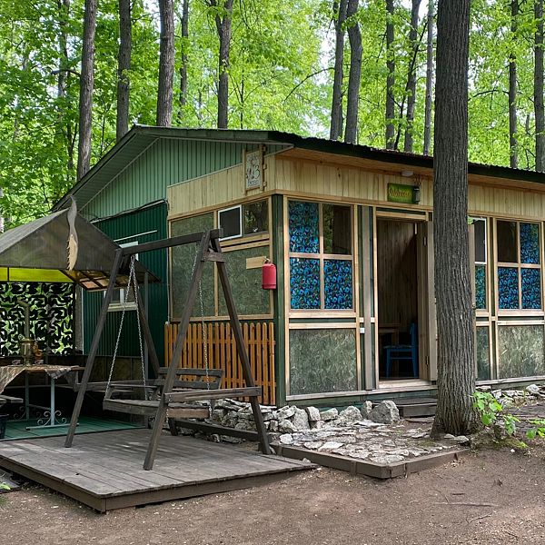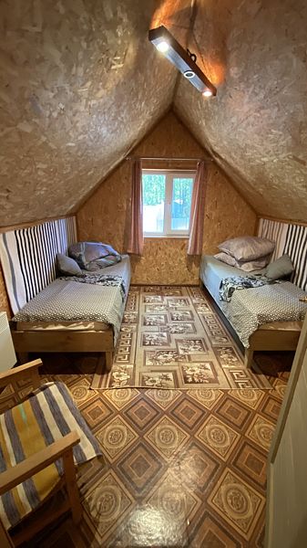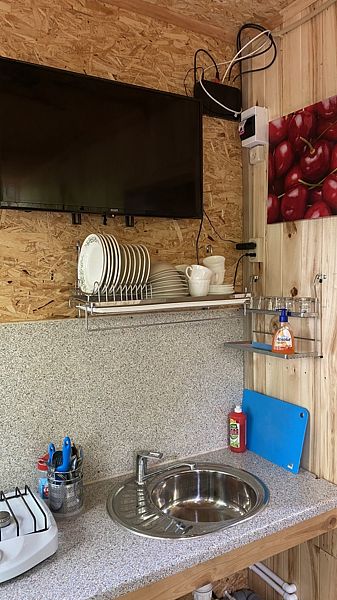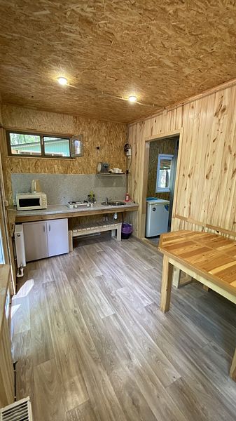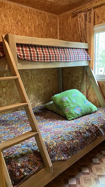 Маленький уютный домик рассчитанный на двоих. Внутри вы найдете двухъярусную кровать, диван, газовую плитку, телевизор.