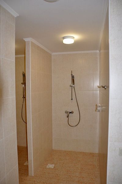 На первом этаже имеются 4 спальни, две ванные комнаты, зона мини-кухни, большой холл с раздвижным столом и телевизор со спутниковым ТВ. В каждой спальне - двухспальная кровать, комод и зеркало.