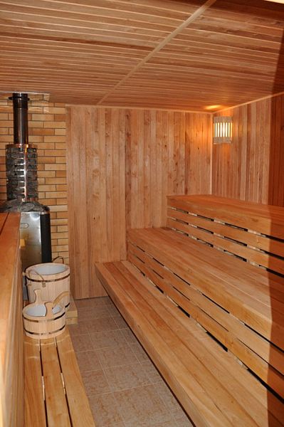Оборудована микроволновкой , чайником и холодильником. Неповторимый уют помещению создают диваны и электрокамин. Присутствие телевизора и музыкальнного центра поможет весело провести время. На улице находится мангал и подсобный стол.