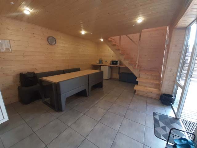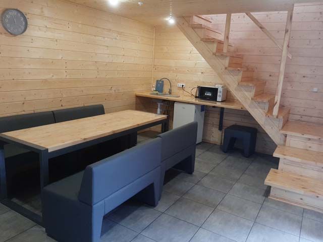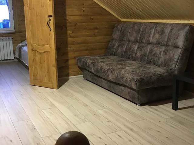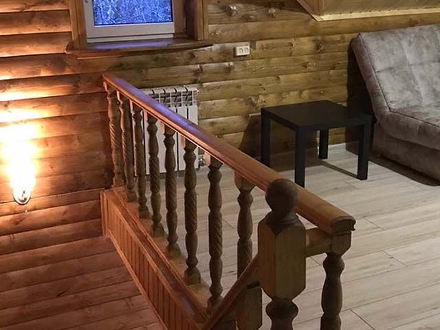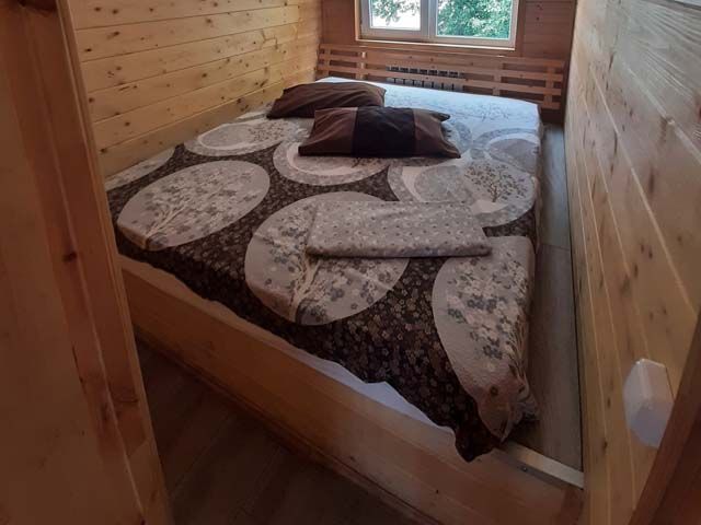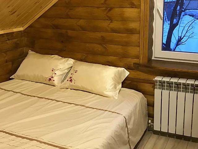 Двухэтажный дом, две спальные комнаты, два дополнительных дивана, бильярд. Финская сауна с эффектом русской бани, купель, обливное холодное ведро. Музыкальный центр, ТВ, микроволновая печь, холодильник, чайник, мангальная зона.