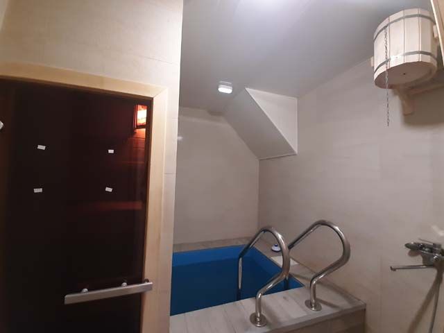 Финская сауна с эффектом русской бани, купель, обливное ведро.