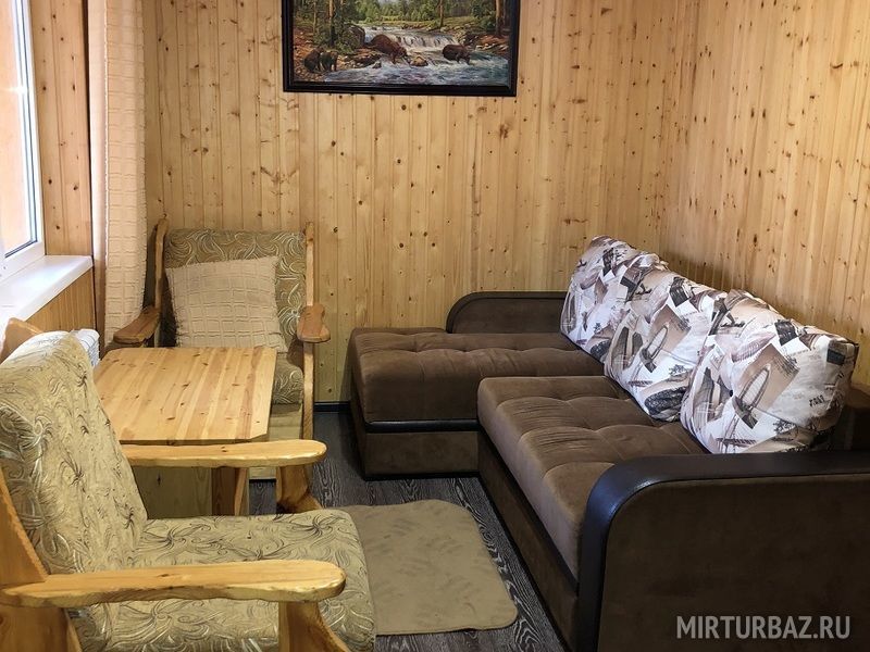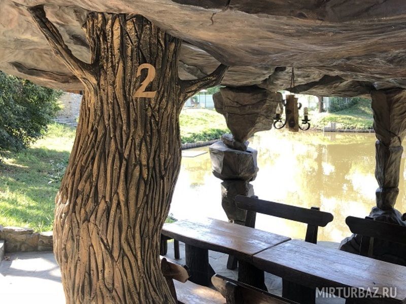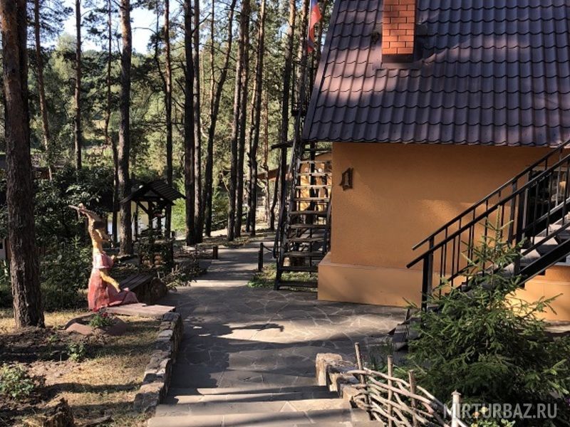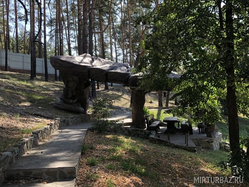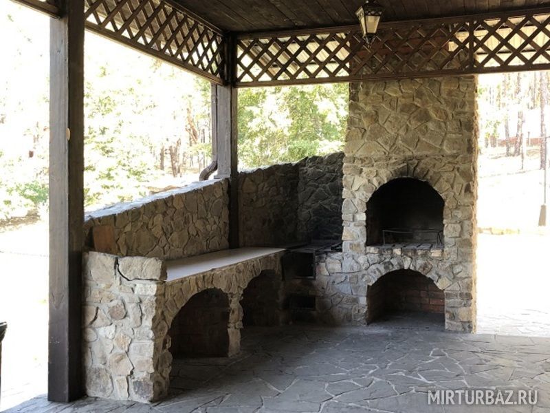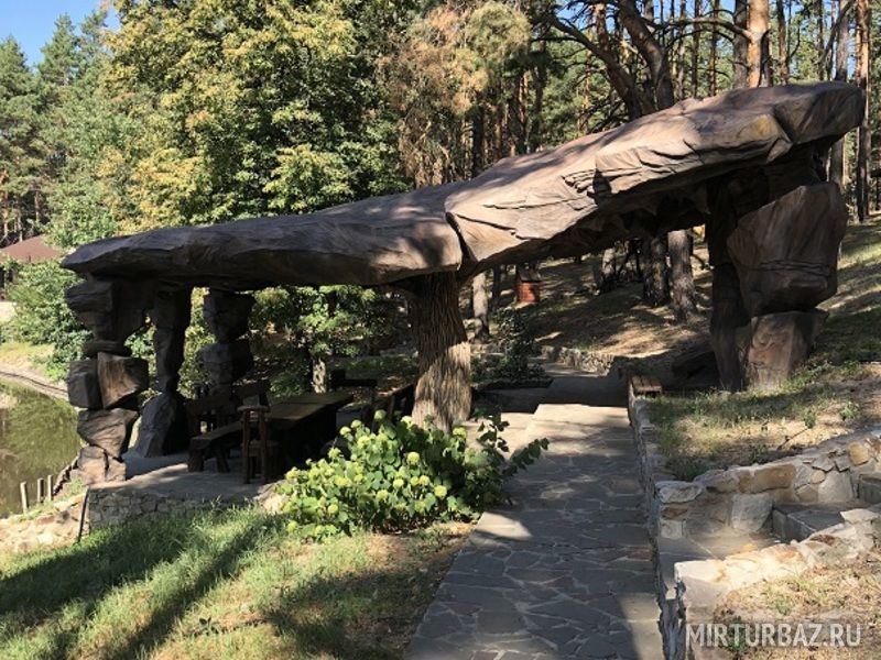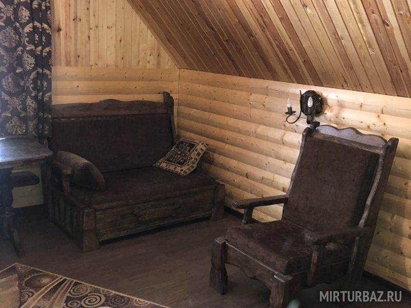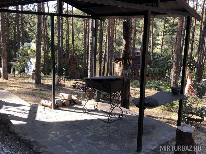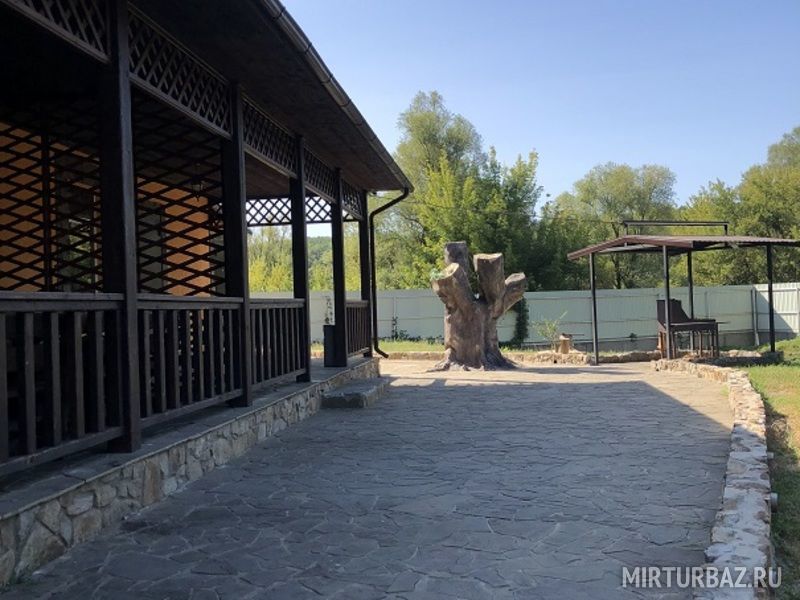 К услугам гостей комплекс деревянных домиков и беседок, баня, сауна, пруд для рыбалки и купания. В отделке беседок и коттеджей использованы натуральные материалы – дерево и камень. Территория озеленена и благоустроена.