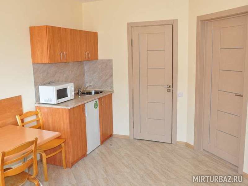 - кухонный гарнитур: микроволновая печь, чайник, набор посуды;