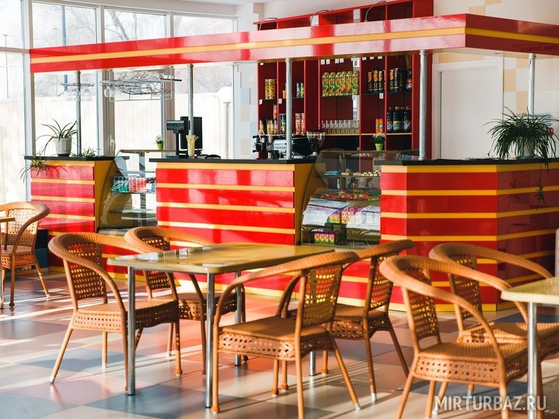 Новые корпуса гостиницы и коттеджей оснащены современной мебелью. Для организации питания на базе имеется ресторан и летнее кафе. Отдыхающие могут воспользоваться современным тренажерным залом, многофункциональным спортивным залом, открытым бассейном и другими активностями.