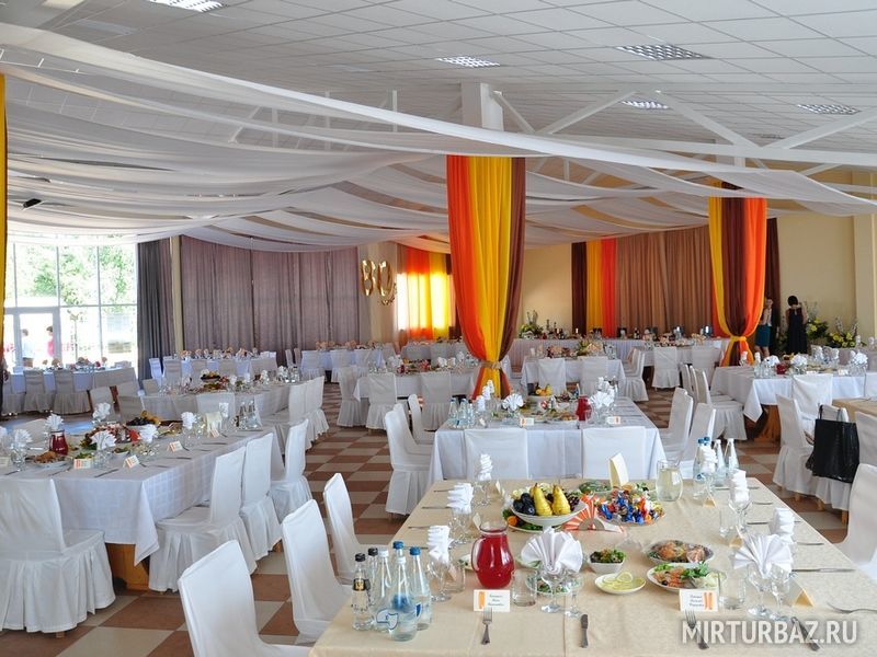 Для проведения торжественных мероприятий база отдыха «Славянка» предоставляет для своих гостей 3 банкетных зала от 60 до 250 посадочных мест, меню рассчитано на разные вкусовые предпочтения, есть детское меню!