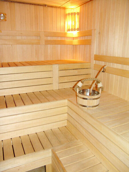 Финская сауна с купелью расположена на первом этаже корпуса «Деловой» (купель с гидромассажем и подсветкой). Просторная и уютная комната для отдыха прекрасно дополнена камином и телевизором. Так приятно после напряженного рабочего дня или на выходных пообщаться с друзьями, посидеть за большим овальным столом, выпить бокальчик холодного пива (здесь установлен мини-бар) или доброго вина…